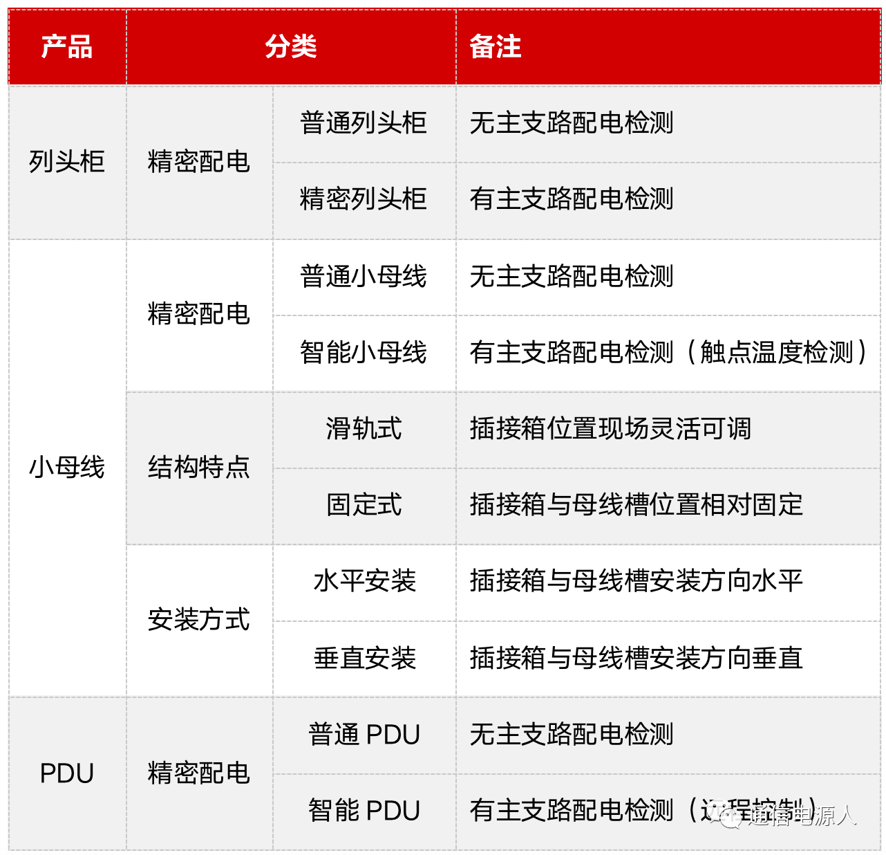 屬于歷史最久,應用時間最長的末端配電設備,也是目前最為成熟的終端配電產(chǎn)品,產(chǎn)品偏定制化,當前技術發(fā)展主要是配合部分高端客戶需求,類似支路溫度檢測、開關熱插拔支持調(diào)相等(請關注公眾號:通信電源人)。
