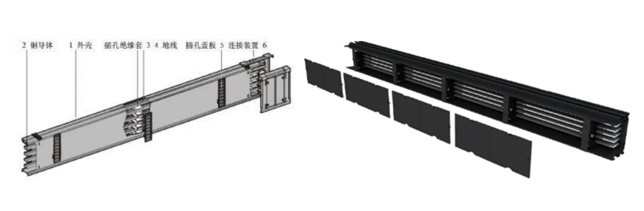 其母線槽一般采用型材設計,內(nèi)部銅排與母線槽采用無夾具的固定方式,母線槽中間是一個連續(xù)中空的腔體,插接箱可以在其中任意位置進行安裝,如下圖所示。