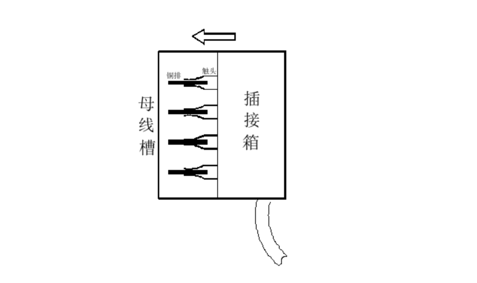 其插接箱為水平方向安裝,插接箱固定在母線槽側(cè)面。
