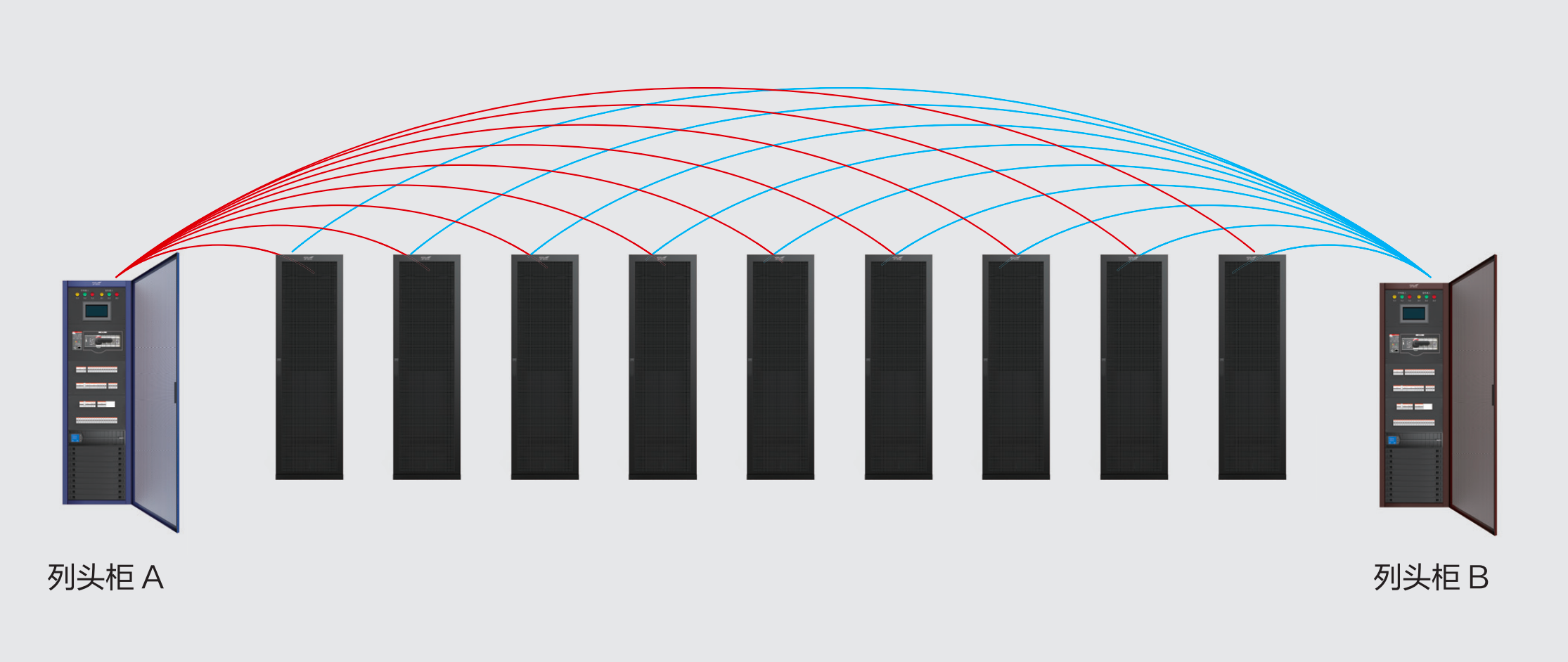 A/B路2N配置(藍 /棕),每條含兩條母線,只需給本列機柜供電。