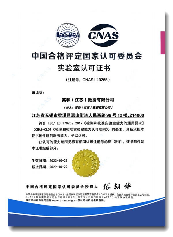英和(江蘇)數(shù)據(jù)有限公司榮獲CNAS證書,打造行業(yè)標桿